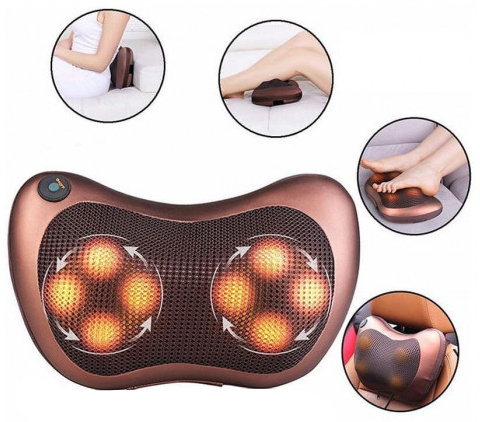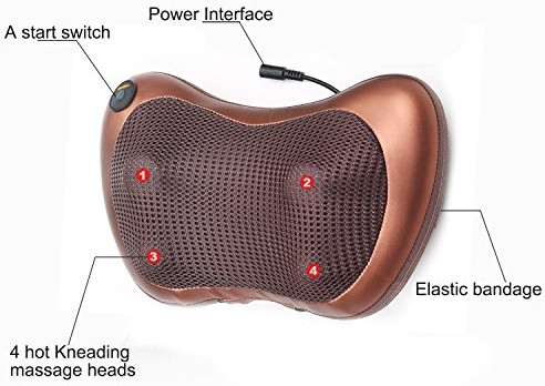 Massage pillow has fine texture PU fabric, lightweight ultra-thin design, stylish looks, built-in four kneading massage head, one-touch IC switch, power switch, infrared switch, back adjustable buckle design. It can be fixed in the car pillow at massage of the neck and configured the car cigarette lighter and power transformers. Dual-purpose power source – car power AC voltage AC220V /110V power 22 watt.